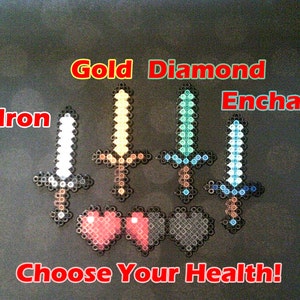 New Pickaxes Perler Minecraft Swords Or Heart Health Bar Etsy